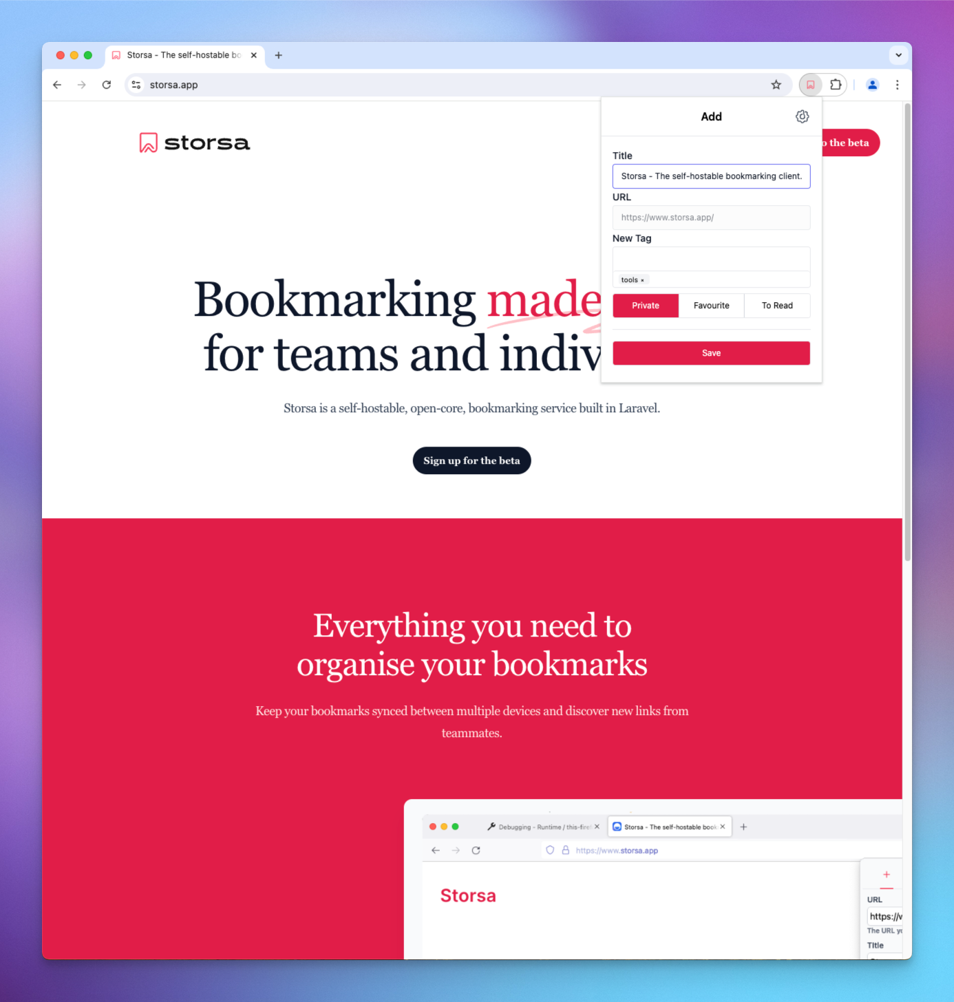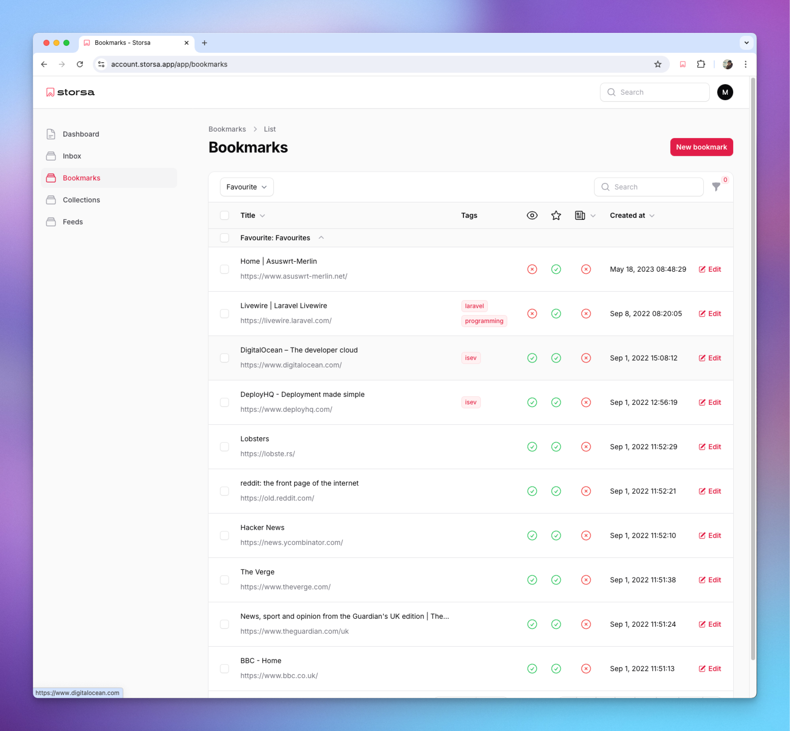 Storsa is a self-hostable, open-core, bookmarking service built in Laravel.